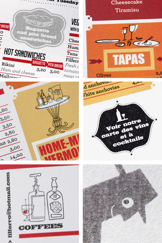 El repte era crear una carta on els clients poguessin veure tota l’oferta amb un sol cop d’ull. No només les tapes i els aperitius sinó també els plats més elaborats, els còctels i les begudes. Una carta que servís per tot i que fos tot terreny i resistent, un bon reclam per aquest peculiar bar de la Barceloneta.