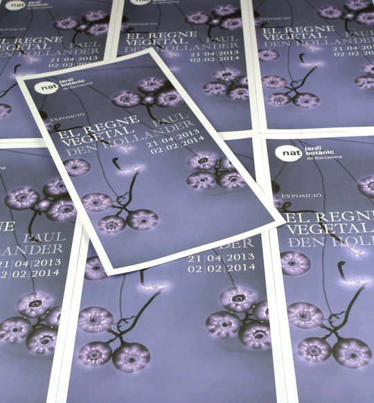 Els responsables de comunicació del Museu Blau, ens van demanar la realització de la imatge de l’exposició “El Regne Vegetal” del fotògraf Paul Den Hollander, aquesta exposició estaria ubicada al Jardí botànic, per la seva temàtica. L’obra de l’autor seria la protagonista i l’havíem d’acompanyar d’una tipografia que reforcés la idea de tradició i modernitat, una tipografia creada al segle XVIII, la Ibarra Real,on podem trobar en els seus tipus també elements florals.