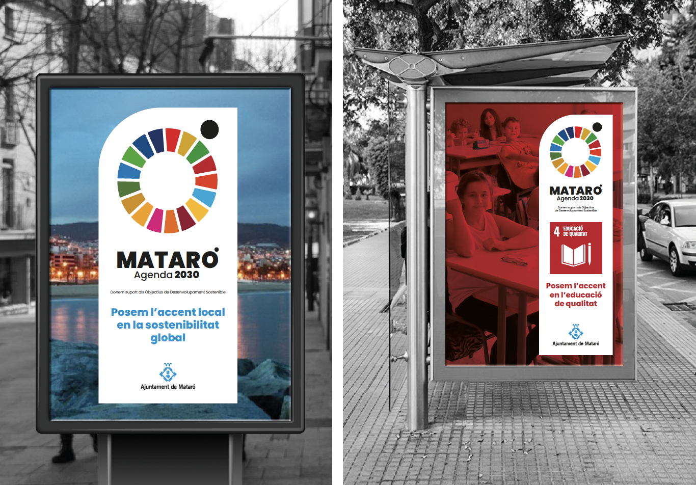 De forma minimalista pero con gran fuerza y personalidad, la nueva identidad gráfica relacionada con la estrategia de futuro de Mataró (ligada a los ODS en consonancia con toda su planificación existente y prevista) hace hincapié en los aspectos de sostenibilidad desde una concepción integral de la misma, a la vez que permite aterrizar grandes conceptos y valores a nivel local como son el Fam cero, Salud y bienestar, Reducción de las Desigualdades en equilibrio con la Acción por el Clima, la Vida submarina o las Ciudades y comunidades sostenibles .