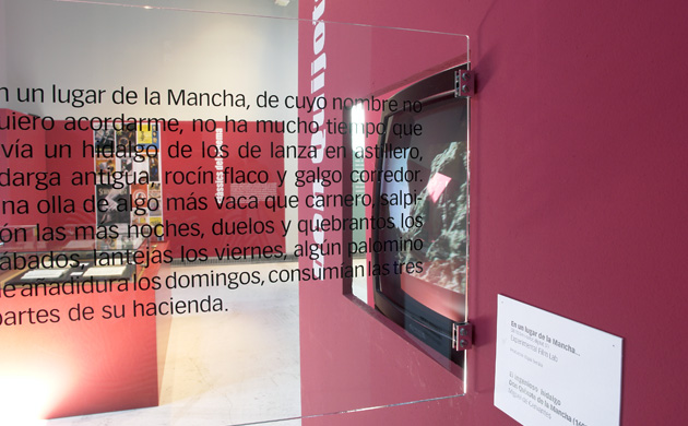 En este proyecto el color determinaba y delimitaba cada apartado de la exposición. Con una tipografía contundente colocada de forma vertical y con la ayuda del color creamos diferentes espacios que nos ayudaban a pautar las diferentes fases de la muestra. Reutilizamos maderas de otras exposiciones para la realización de estructuras donde se colocaban las diferentes pantallas de TV, estas estructuras móviles también nos ayudaron a marcar el recorrido de toda la exposición.