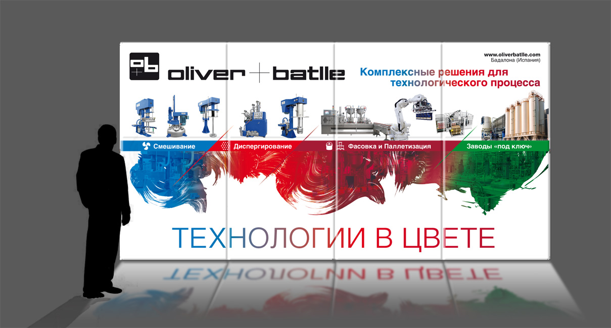 OLIVER + BATLLE és una empresa familiar amb presència mundial desenvolupant equips de producció i realitzant plantes clau en mà per a la Indústria de les Pintures, Tintes i Adhesius. Una aposta per una imatge més propera al món de l’art modern que al món industrial, posiciona la marca amb un fort valor d’actualitat, innovació i lideratge.