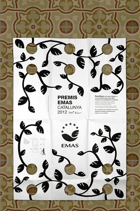 - Desplegat és el poster dels premis Emas i plegat és una bossa per transportar el trofeu
